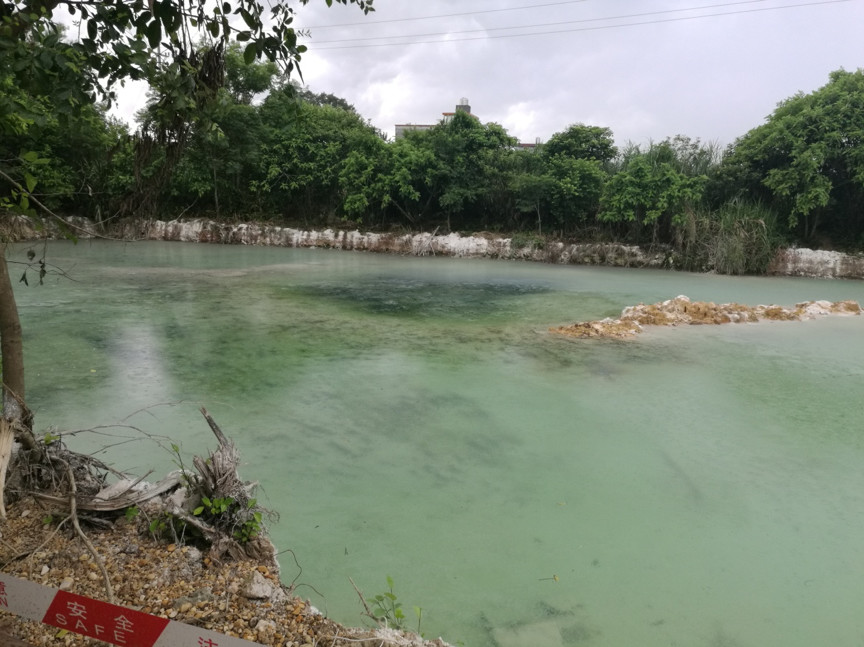 图8 河西街道三丰村鱼塘清理电镀污泥后留下蓝色积水