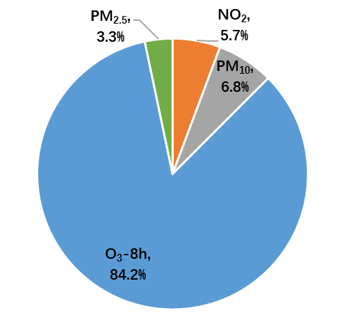 20179月全省城市主要空气污染物为臭氧日最大8小时均值(O3-8h),其作为每日首要污染物的比例为84.2%,其次为可吸入颗粒物(PM10,占比为6.8%,二氧化氮(NO2) 和细颗粒物(PM2.5)作为首要污染物的比例分别为5.7%3.3%。珠三角地区O3-8h作为首要污染物的比例为87.4%NO2PM2.5作为首要污染物的比例分别12.0%0.6%