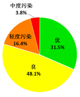 2018年1月全省各城市空气质量达标天数比例平均为79.6%,其中,优占31.5%,良占48.1%;超标天数比例为20.4%,其中轻度污染占16.4%,中度污染占3.8%,重度污染占0.2%,无严重污染。珠三角地区空气质量达标天数比例平均为71.0%。