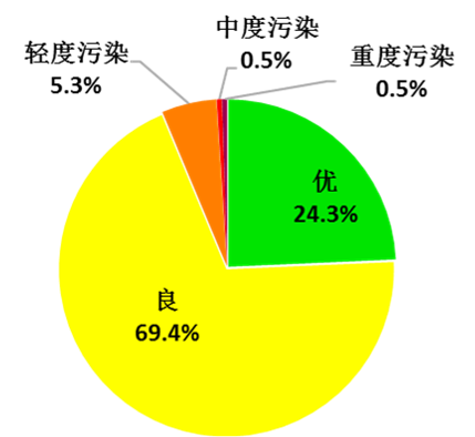 2018年2月全省各城市空气质量达标天数比例平均为93.7%,其中,优占24.3%,良占69.4%;超标天数比例为6.3%,其中轻度污染占5.3%,中度污染占0.5%,重度污染占0.5%,无严重污染。珠三角地区空气质量达标天数比例平均为94.5%。