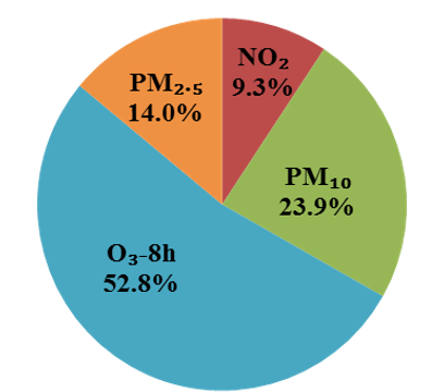 对于SO2、NO2、PM10及PM2.5,Ci为月度或季度平均浓度,Si为对应污染物的年均值二级标准;对于CO,Ci为第95百分位数浓度值,Si为CO的日均值二级标准;对于O3日最大8小时平均值,Ci为第90百分位数浓度值,Si为日最大8小时均值的二级标准。