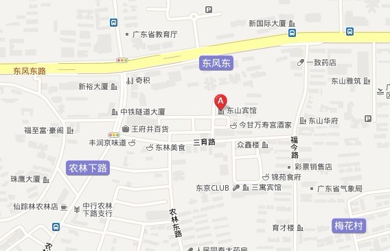 参考路线:东风东路→农林下路→三育路→东山宾馆
