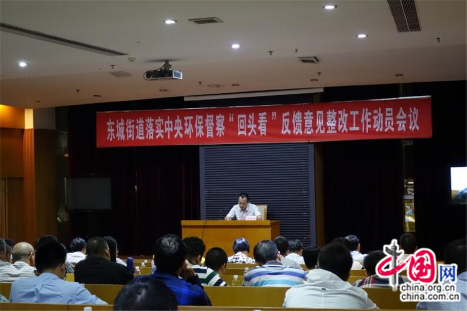 10月19日下午,东莞东城街道在办事处一楼小会议室组织收看收听中央第五环境保护督察组对广东省开展“回头看”情况反馈电视电话会议及市工作会议。随后,东城街道迅速召开了关于推进中央环保督察“回头看”反馈意见整改工作会议,街道党政领导班子成员、各社区(林场)党工委书记、有关单位主要负责人以及环保分局股长以上干部参加了会议。